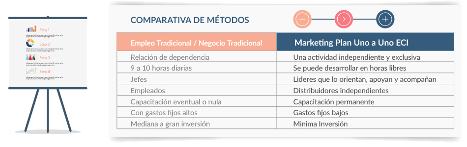 Este sistema de comercialización le permite crecer y prosperar mediante un desafío constante, basado en la creatividad, iniciativa personal y trabajo en equipo, sin interesar su nivel de experiencia ni preparación comercial, ni su edad o profesión. El límite es la meta que usted se proponga.